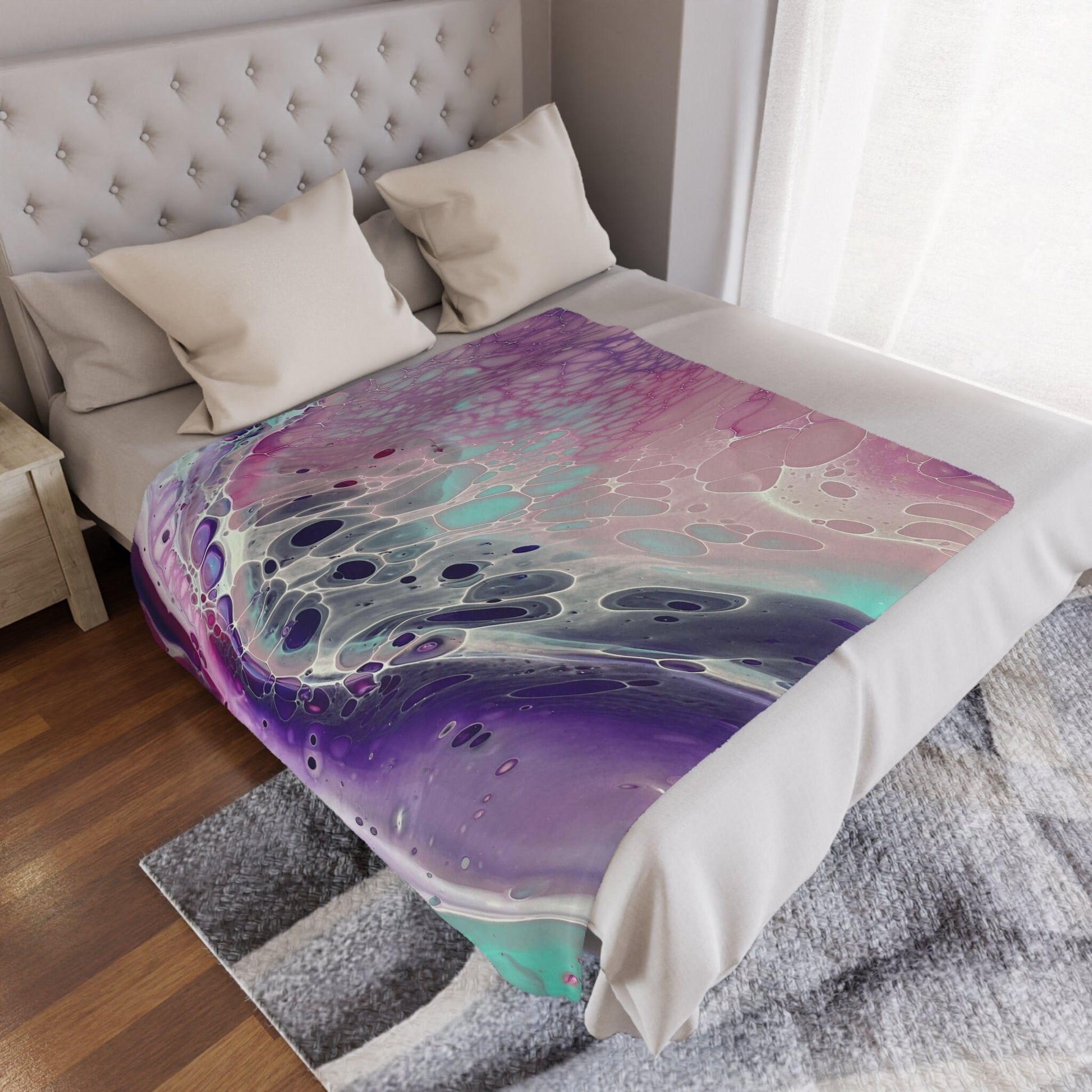 Cute Cozy Blanket for Her with Pink, Purple, and Teal Design