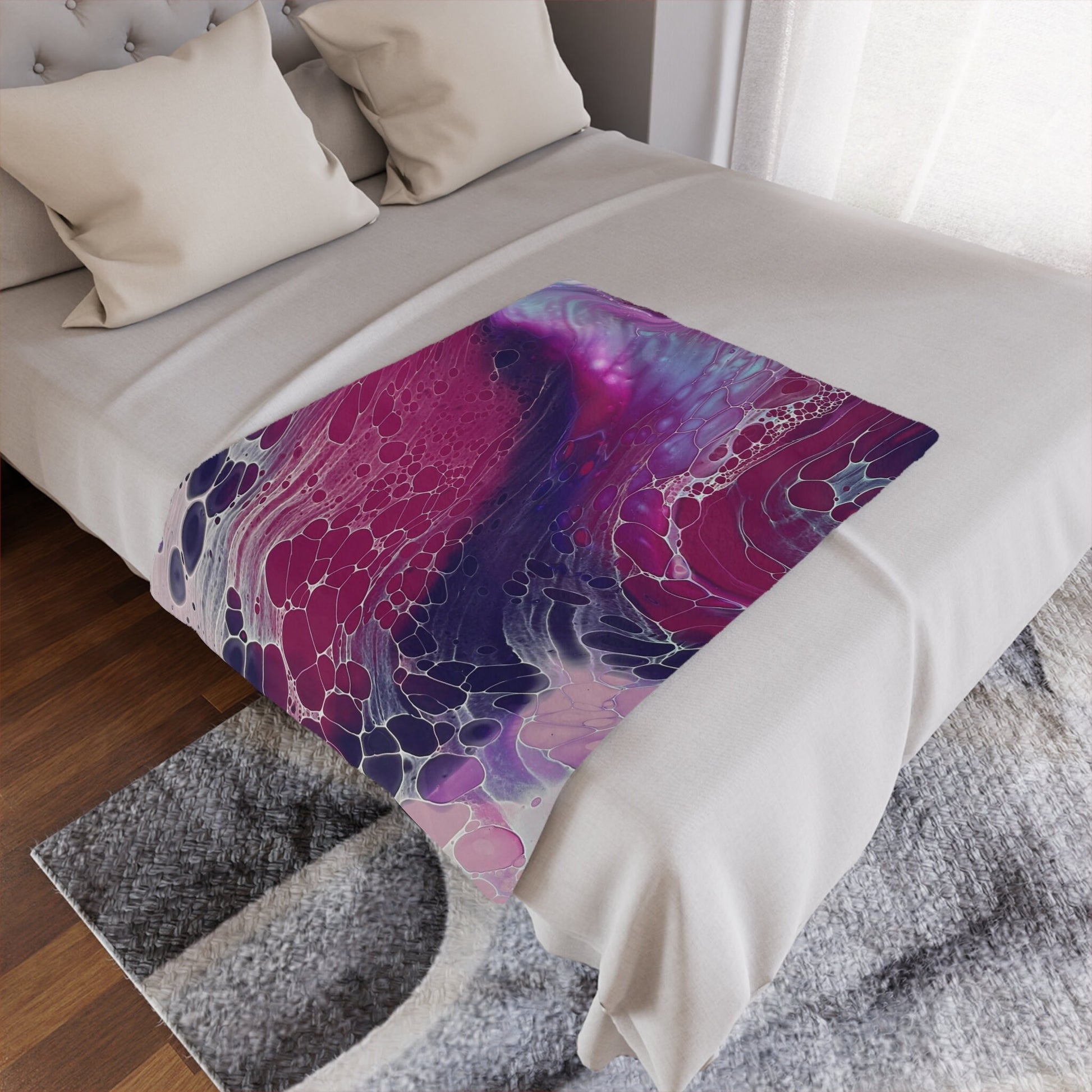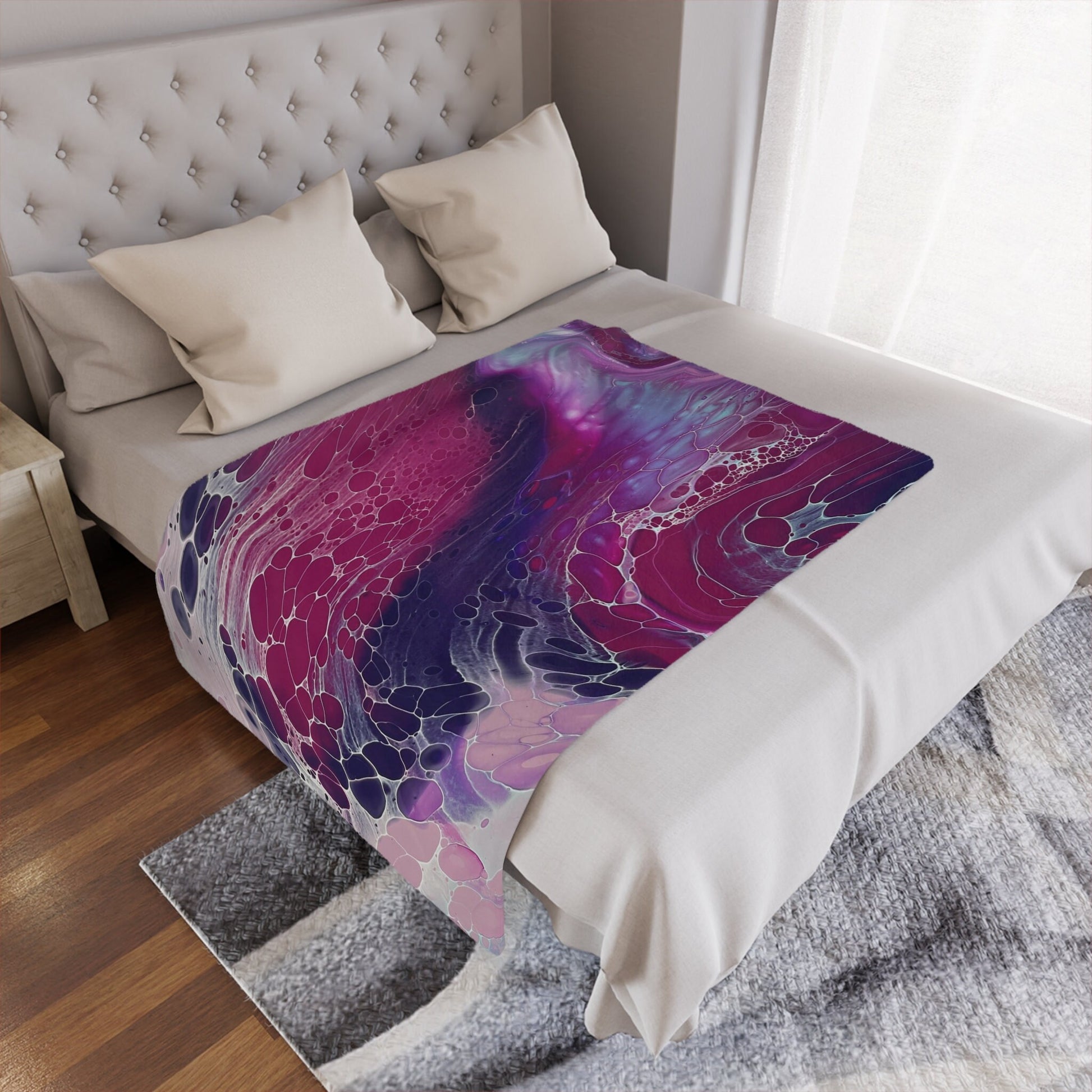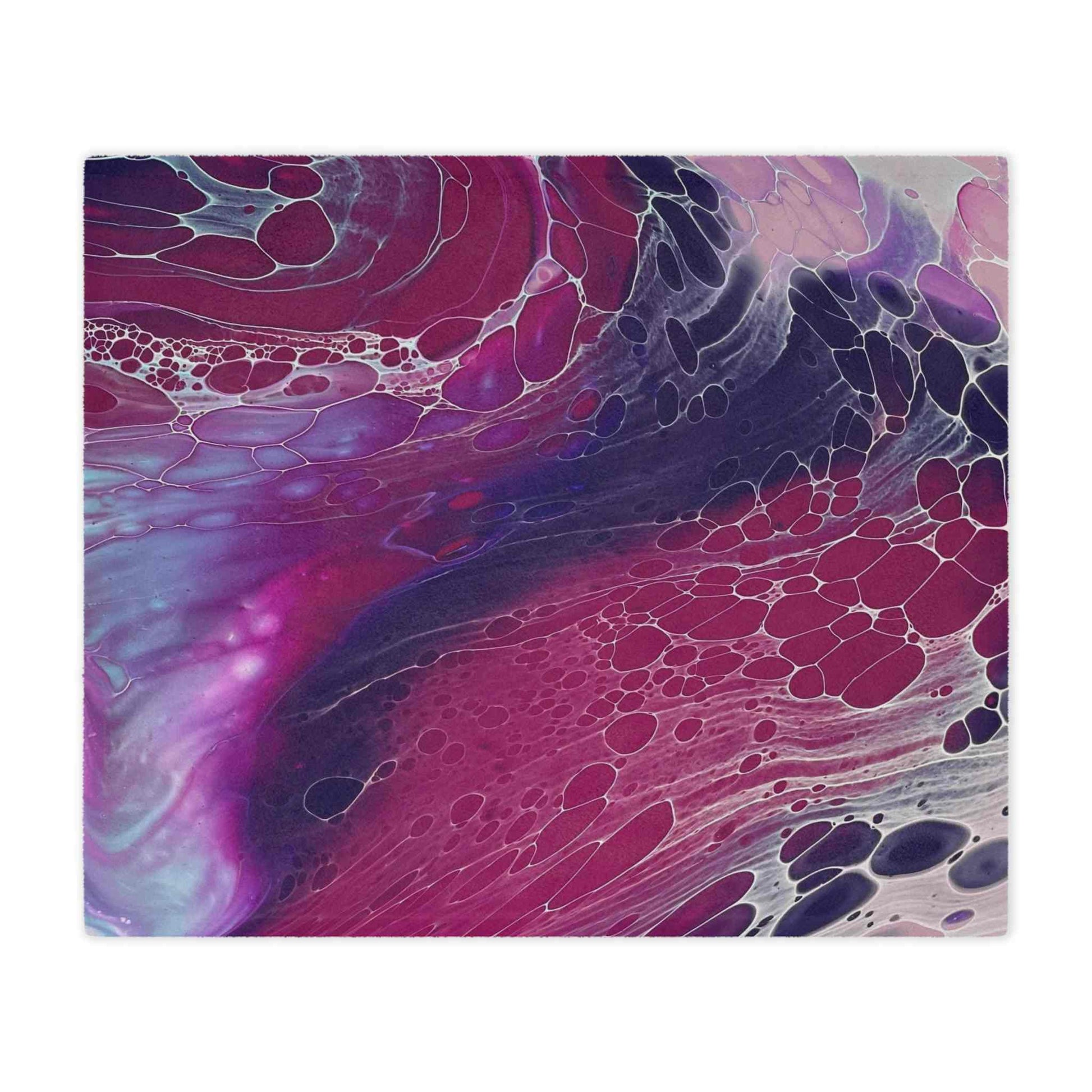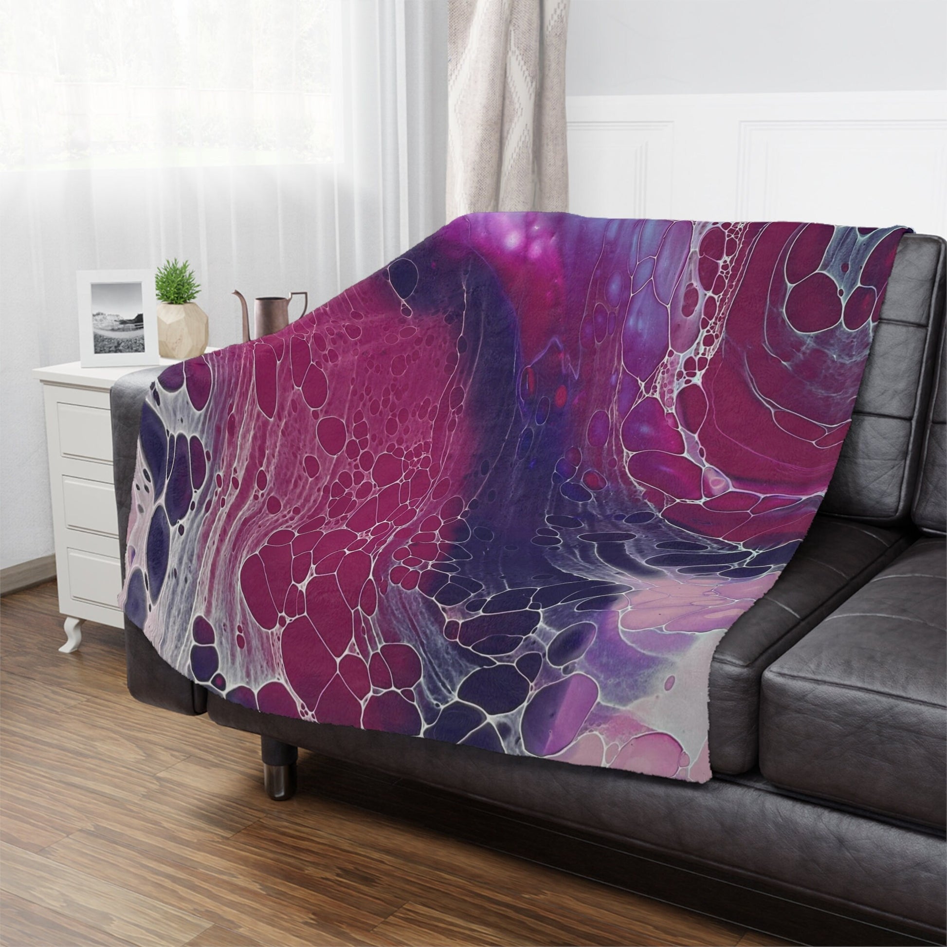 Indulge in warmth & elegance with our cozy blanket, adorned in a beautiful abstract design of purple & pink. It's the perfect gift for a cozy-loving soul.