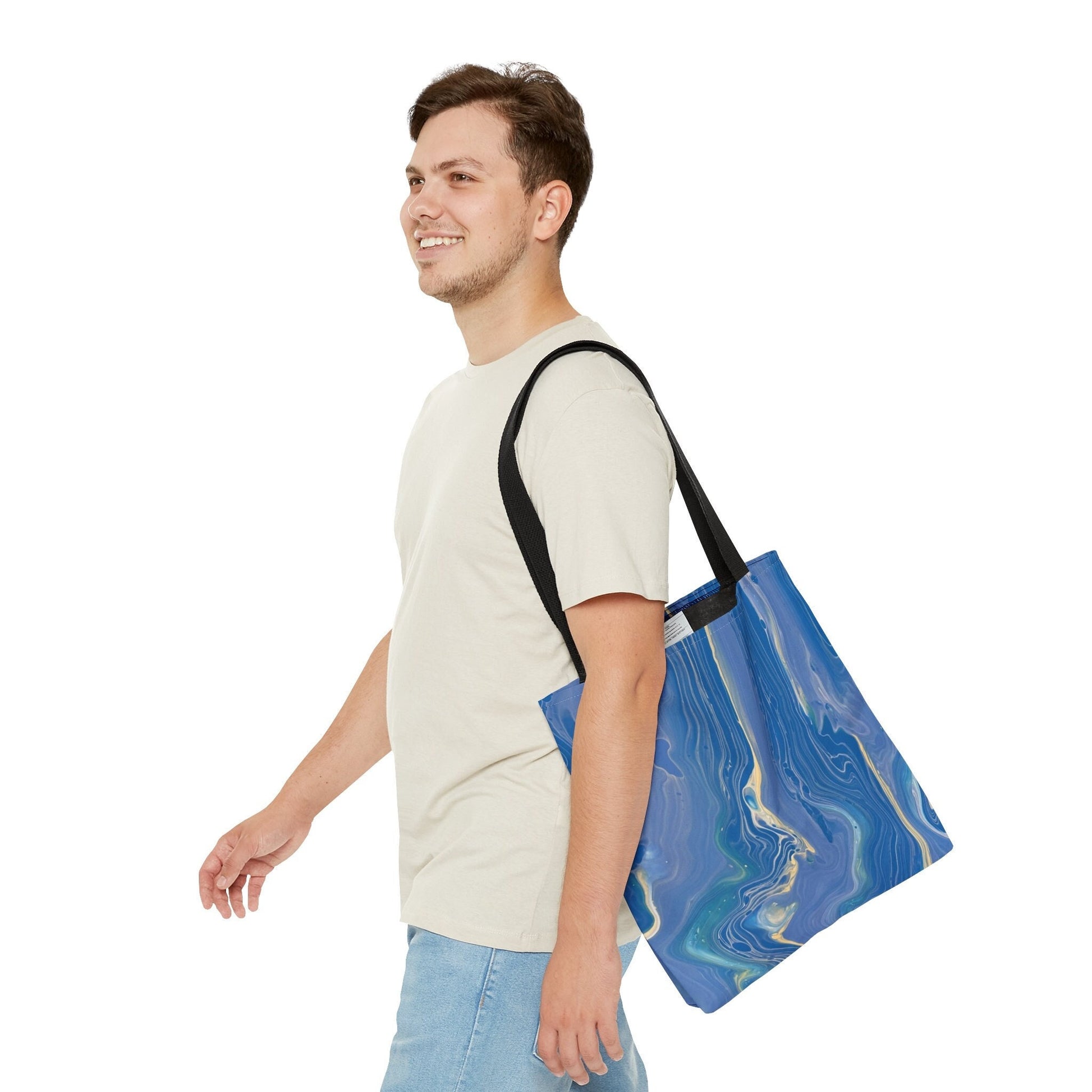 This glacier tote bag is a functional tool and a dreamy mix of blue and white. Use it in the winter for snowy vibes or use it all year long and show off your love of all things chill.