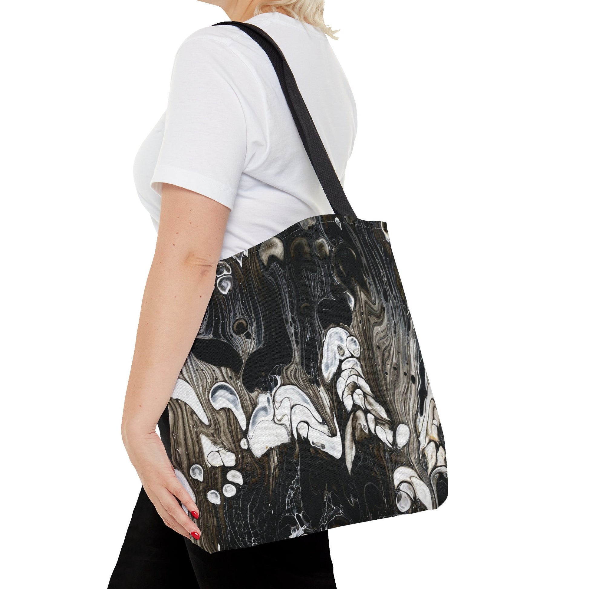 The moody design of this tote bag makes it an excellent gift for those who enjoy a darker aesthetic vibe.