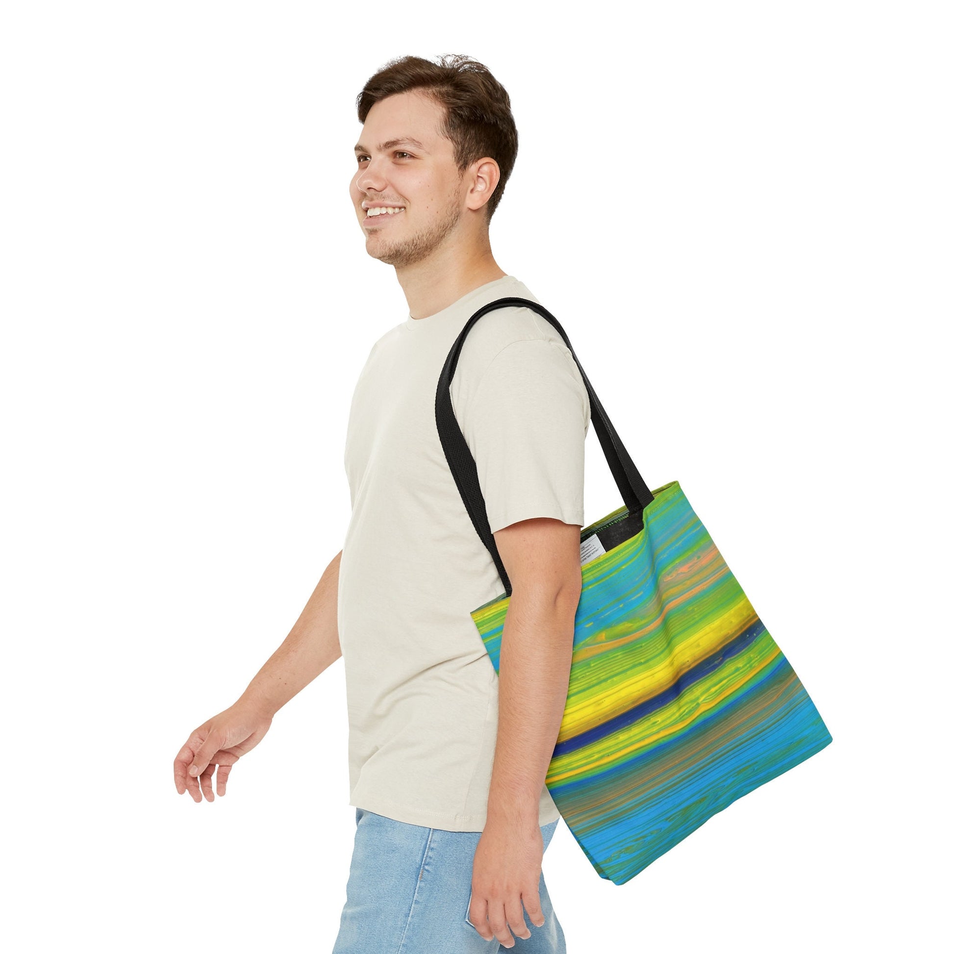 Embrace nostalgia with this retro tote bag featuring a design with soothing yellow and blue hues. It's the perfect accessory that's both functional and stylish.