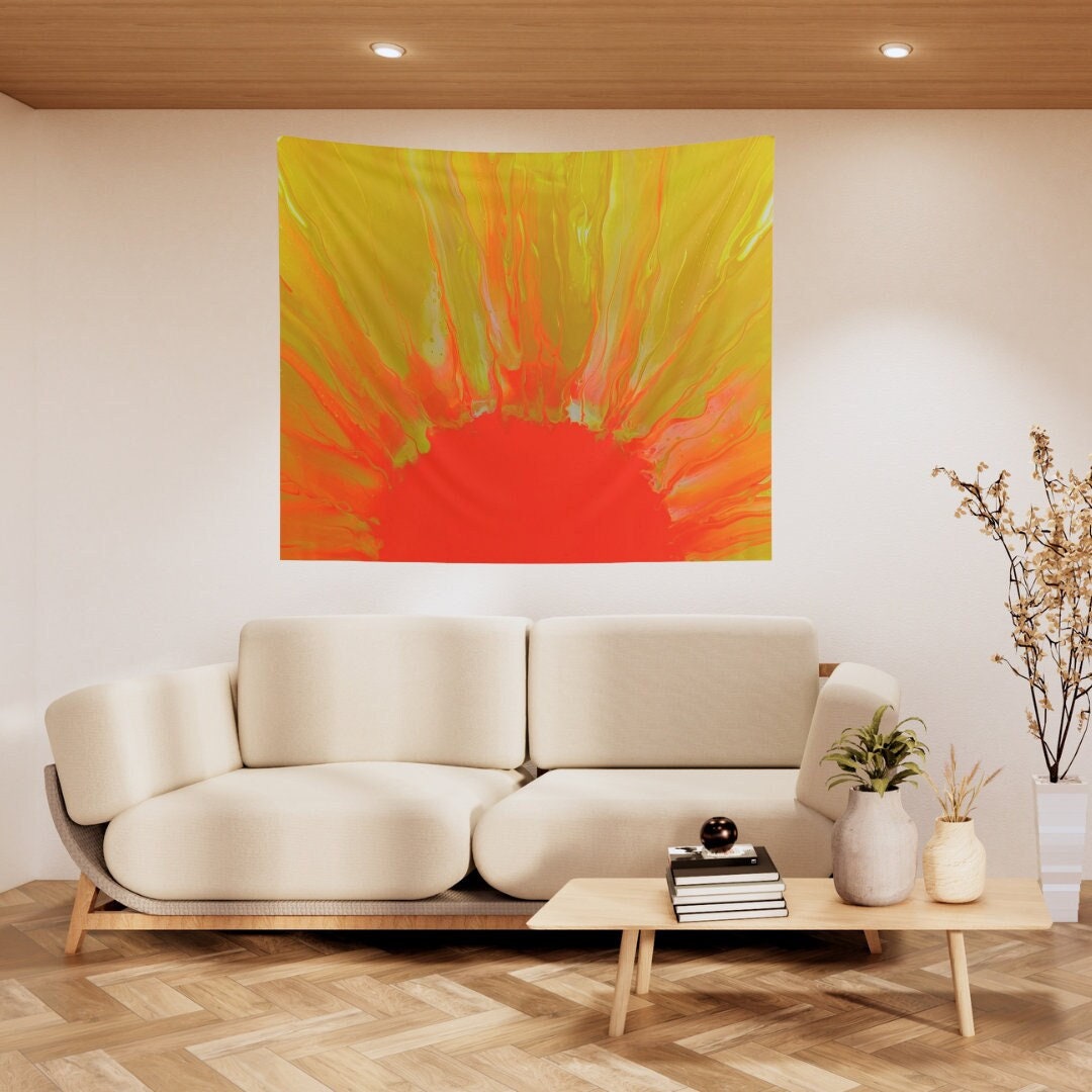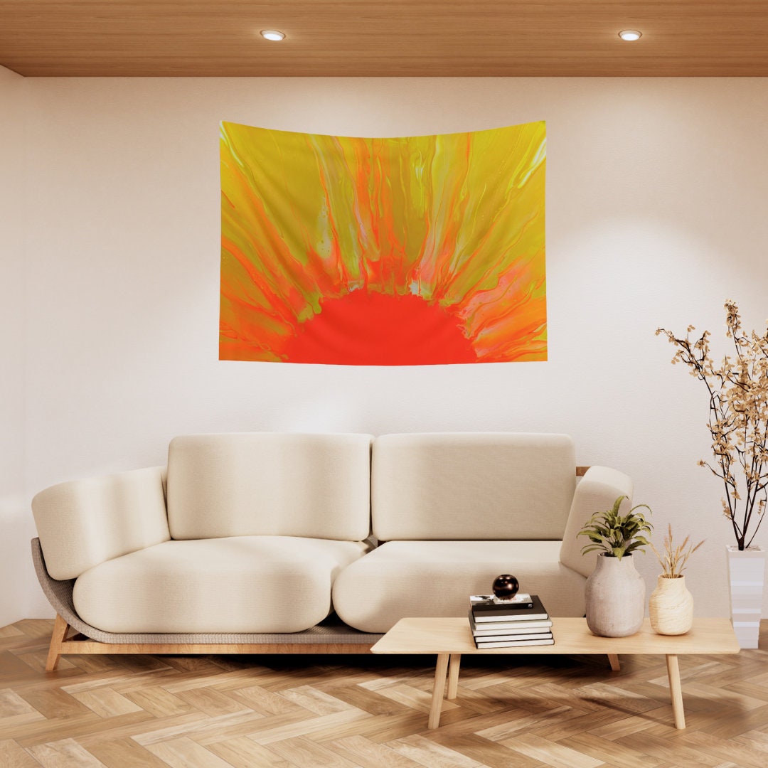 Brighten your space with the Sunrise Art Tapestry! Abstract sun rays bring Boho vibes to your home. Elevate your sunroom and decor in style!