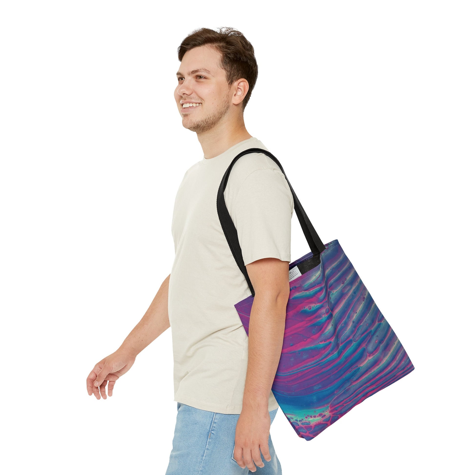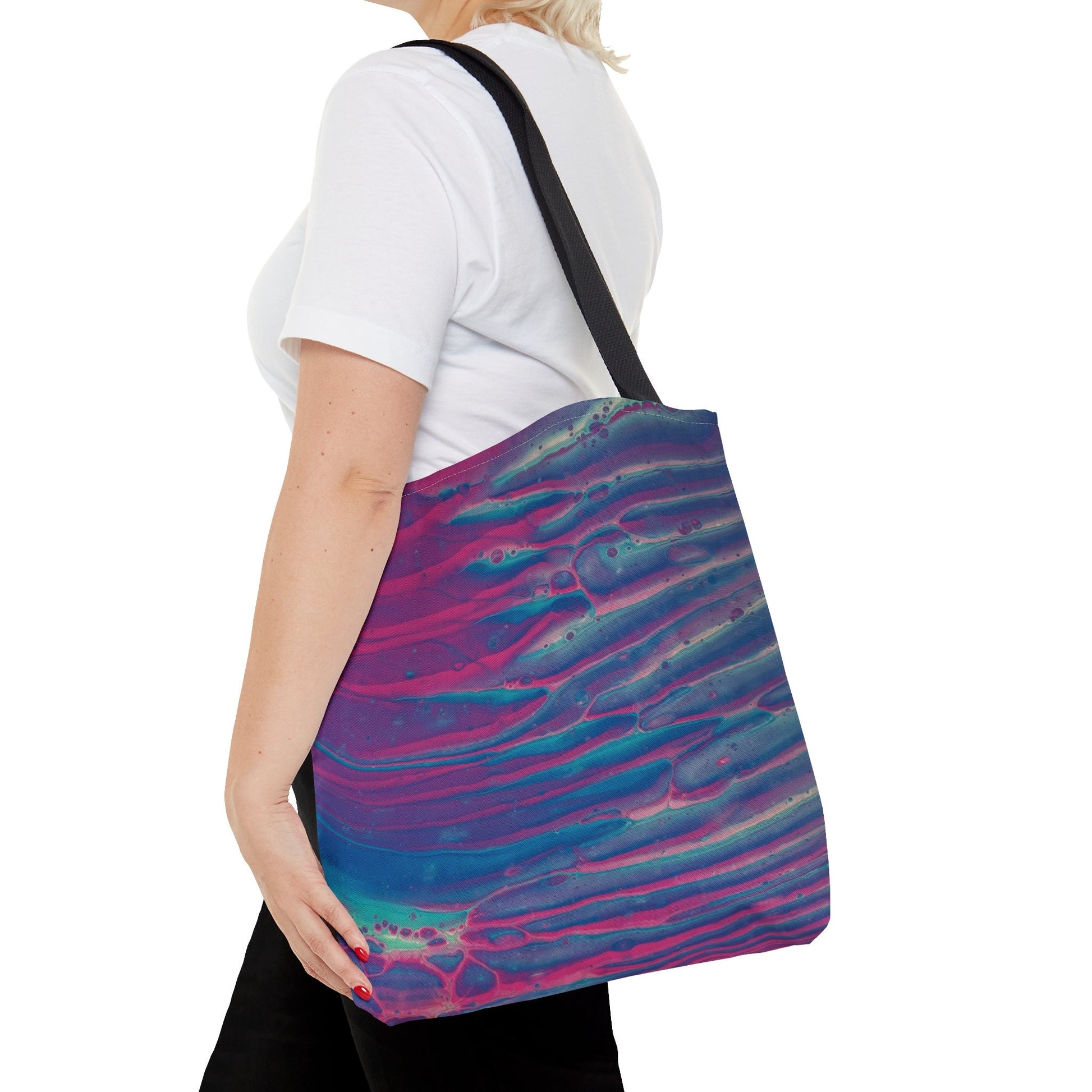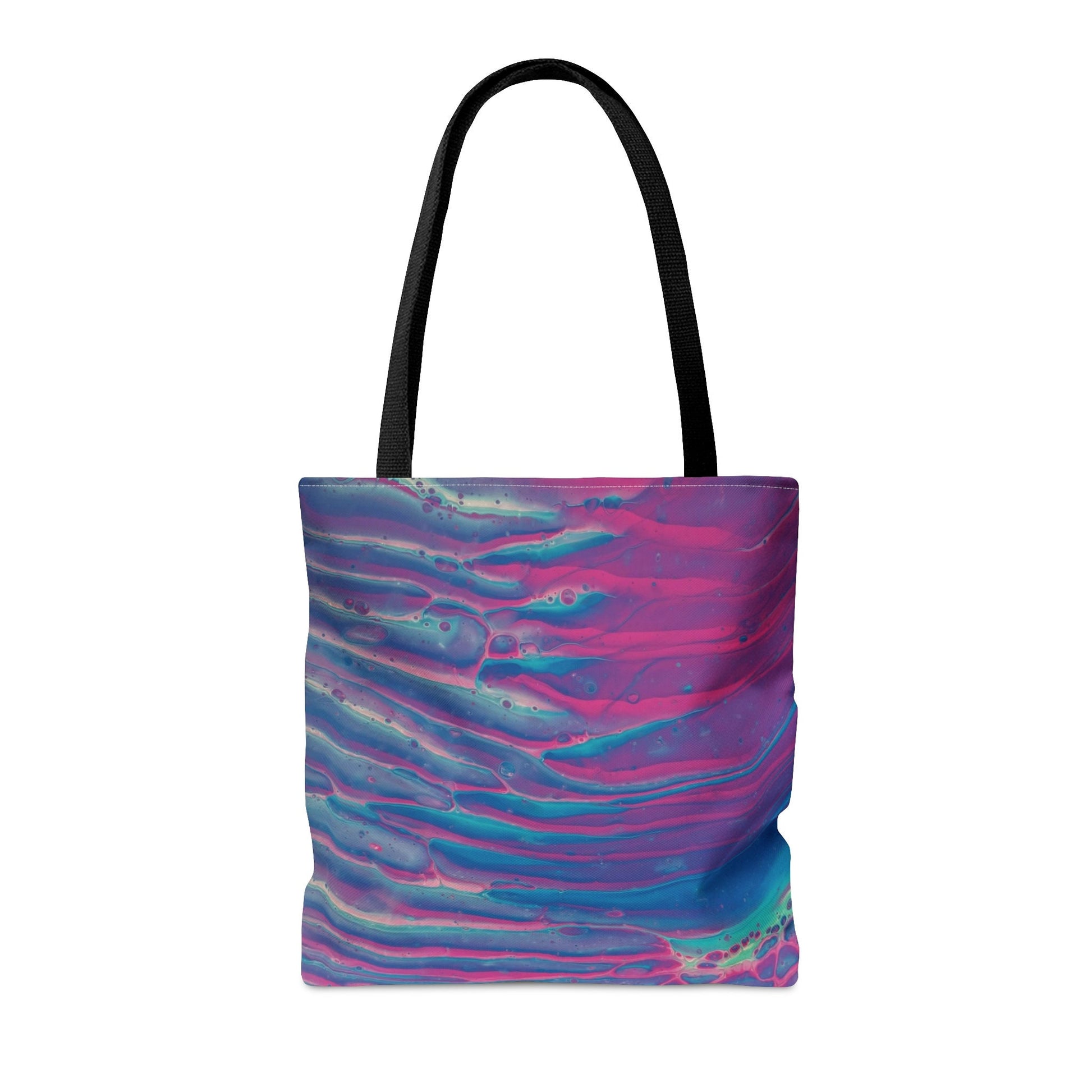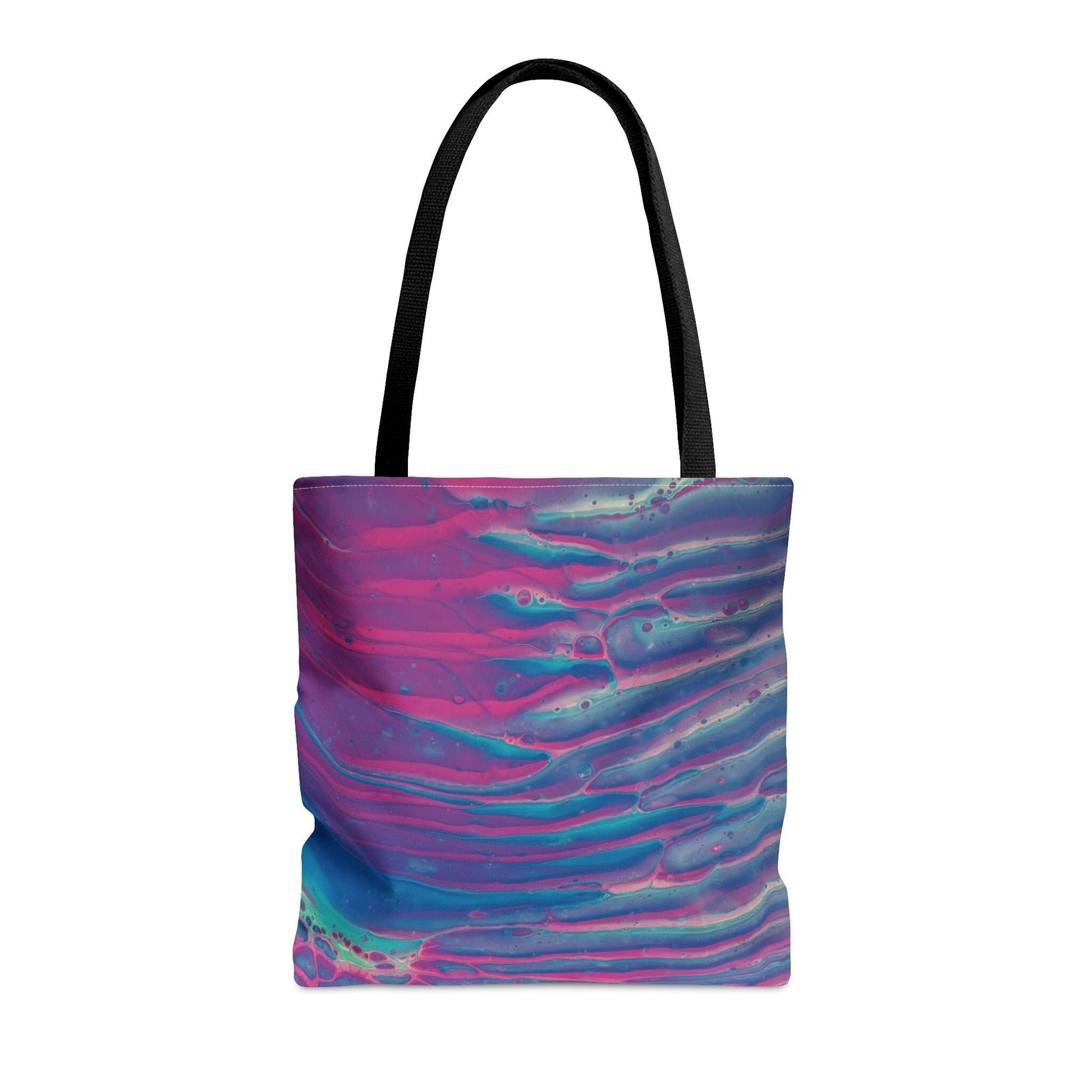 Dive into the serene beauty of rippling waves at sunset with this stunning design featuring a harmonious blend of blue and pink hues. Carry the sunset waves tote bag and ride the tide of style!
