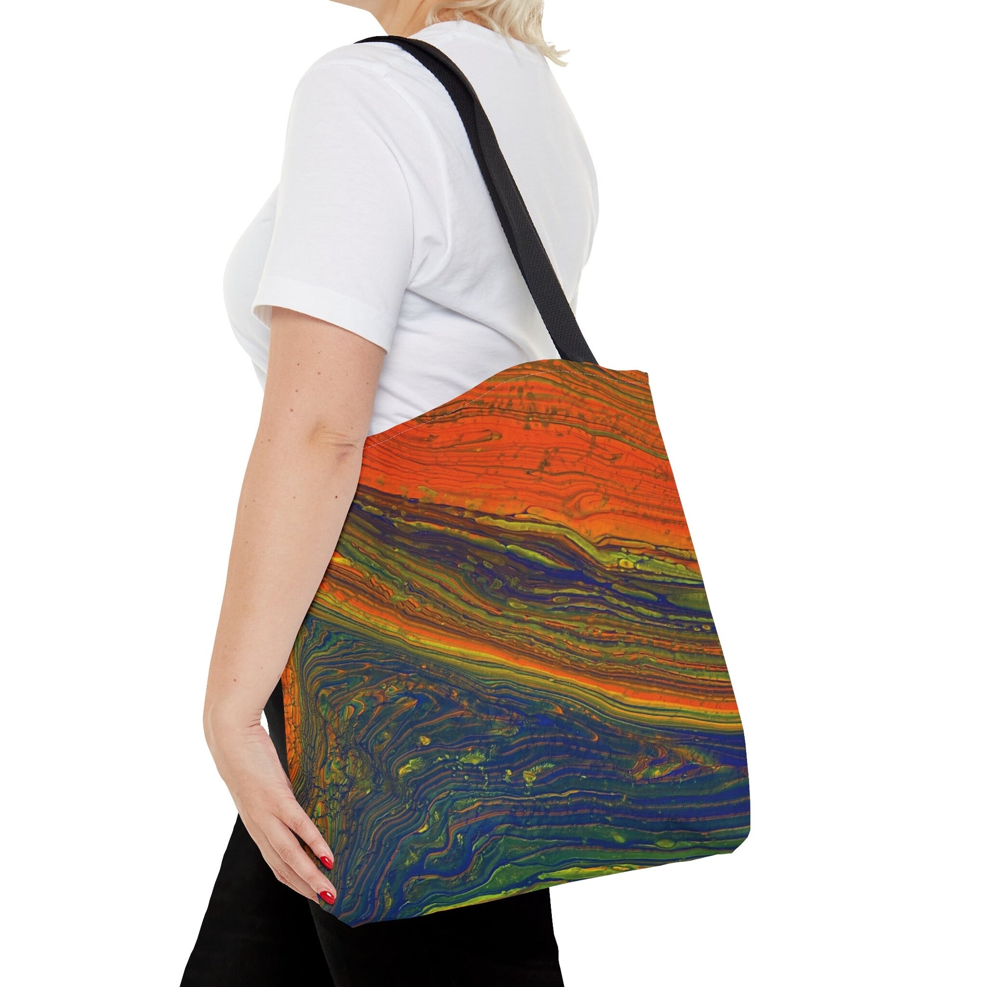With bright neon colors, this trippy design is sure to attract attention, even if it's just carrying your daily essentials.